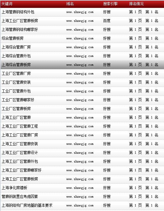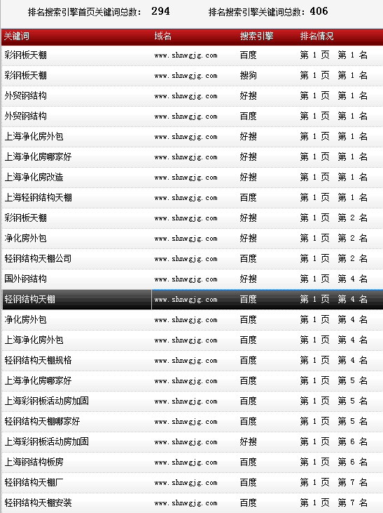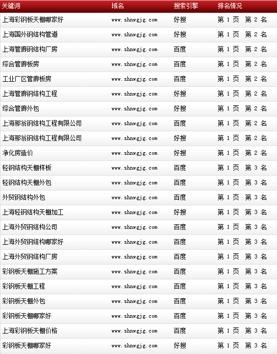 各關(guān)鍵詞在各大搜索引擎排名情況: