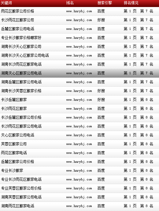 關(guān)鍵詞“長沙岳麓區(qū)搬家”在百度排名:首頁第一位!