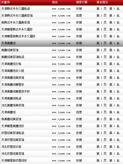 關(guān)鍵詞“天津美瞳線”在百度首頁第一名!