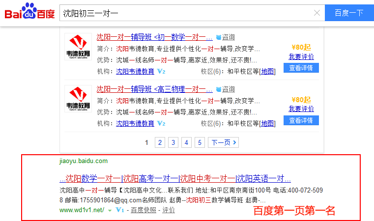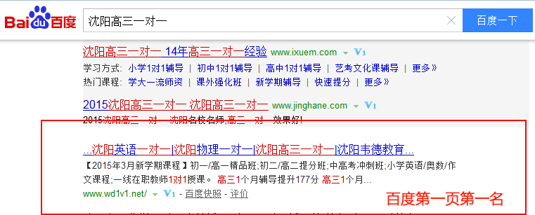 關(guān)鍵詞“沈陽初三一對一”在百度排名:第1頁第1名